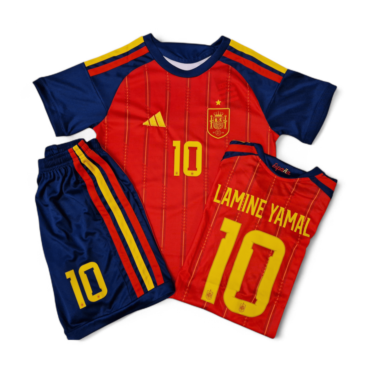 Spain 2026 world cup kids kit including socks. LAMINE YAMAL 10 on the back.